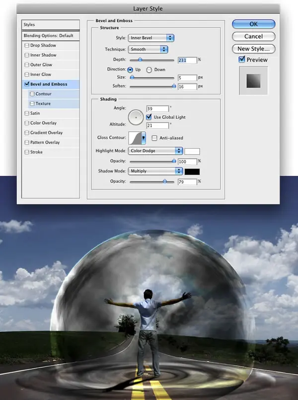 Ir a estilos de capa Capa>> Bisel y relieve. Esta es otra manera de crear el efecto dominó. Usted podría utilizar Plegar así.