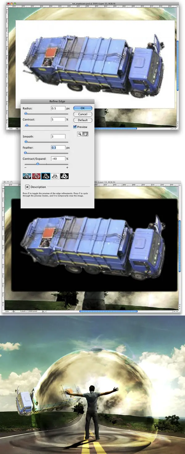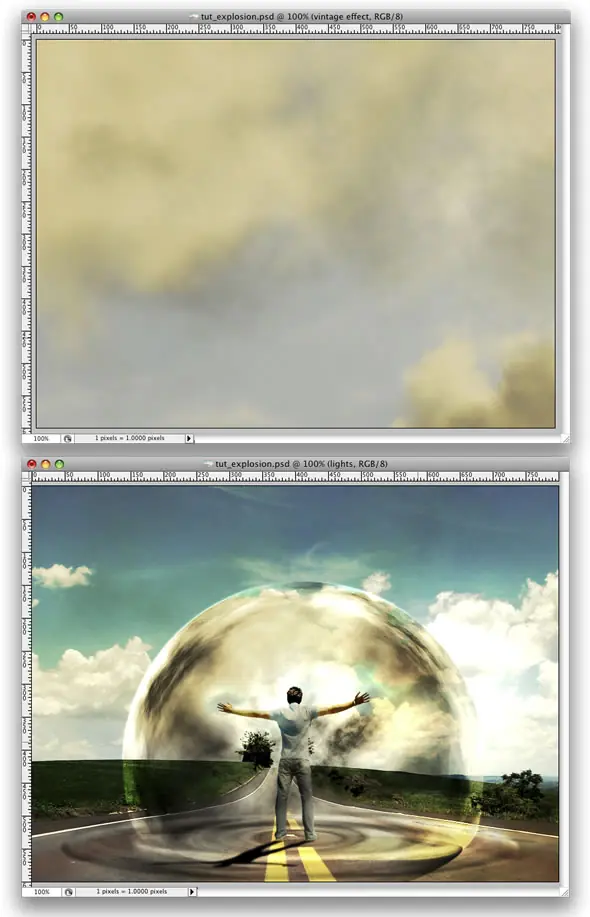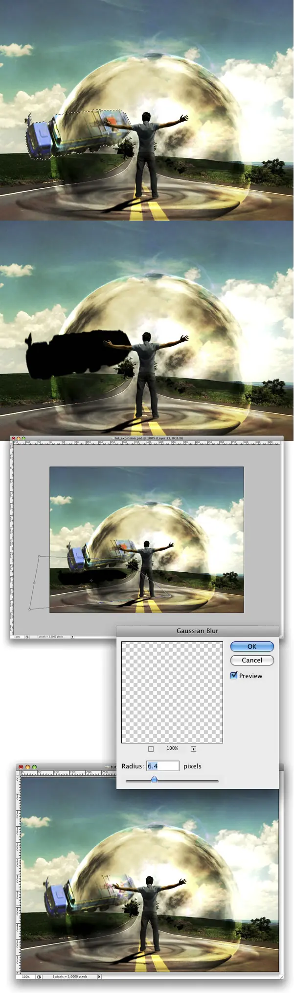 ConclusiónUsted puede agregar más elementos a la imagen, como un cono de tráfico o más coches. Pero siempre cambian las curvas a fin de que los objetos tienen la misma iluminación. Eso hará que la imagen más realista. Para algunos efectos, habrá muchas otras maneras de lograr un resultado similar. Experimente con diferentes métodos para lograr un efecto, como lo hicimos con las ondas. Por último, seguir con los que usted piensa son los mejores para esa imagen.