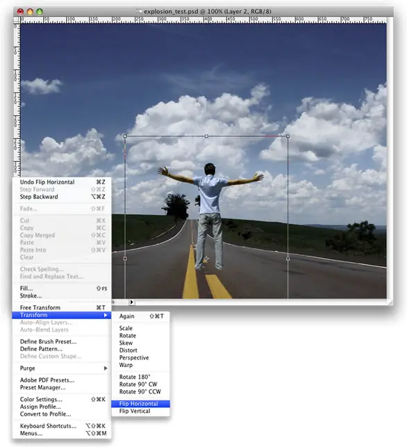 Paso 3Vaya a Edición> Transformar> Escala y reducir el tamaño del tipo. A continuación, vaya a Edición> Transformar> Voltear horizontal. Lo hacemos para que coincida con la dirección de la luz.