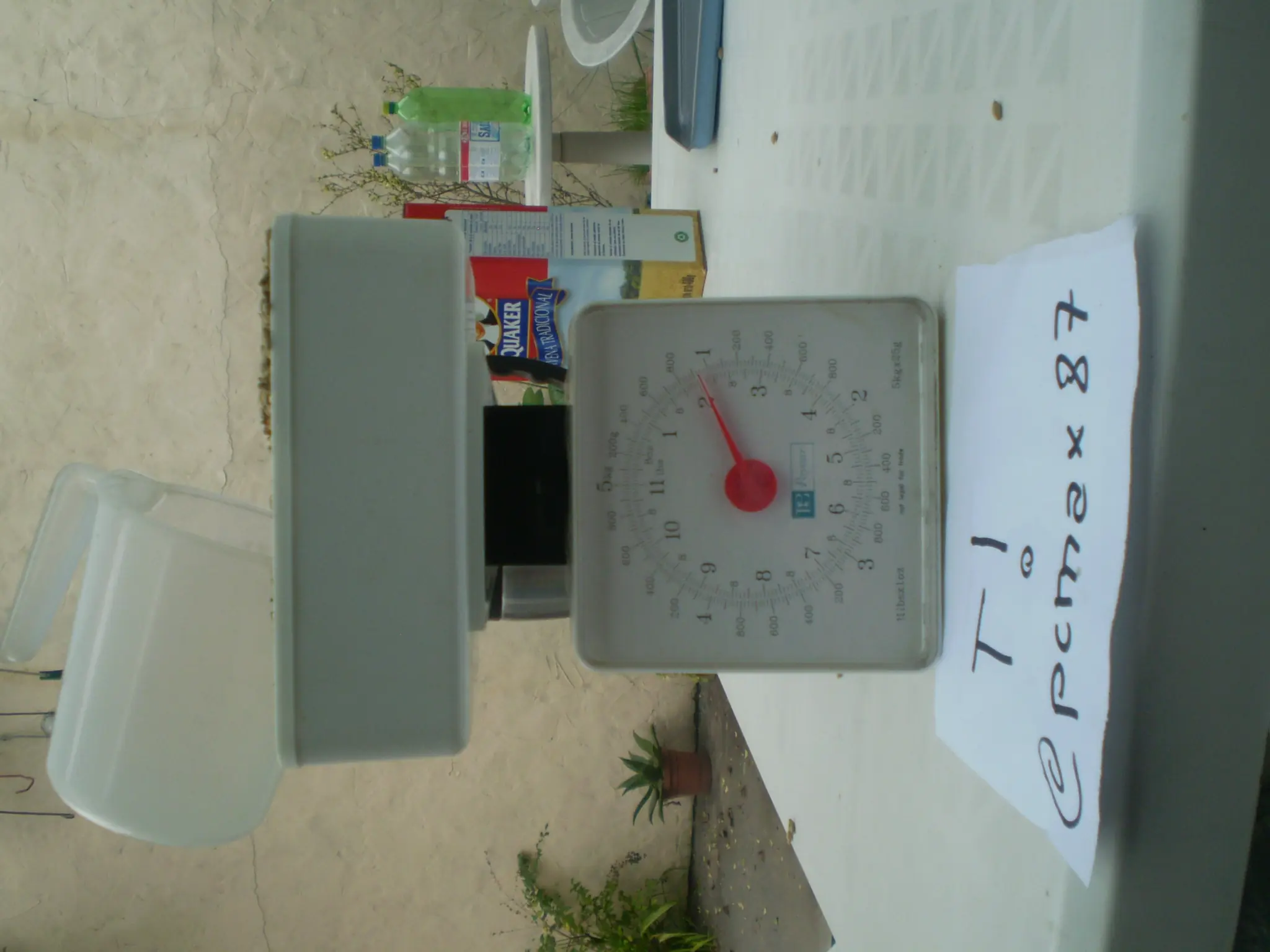 Una balanza de las de cocina, para pesar los granos de cevada.