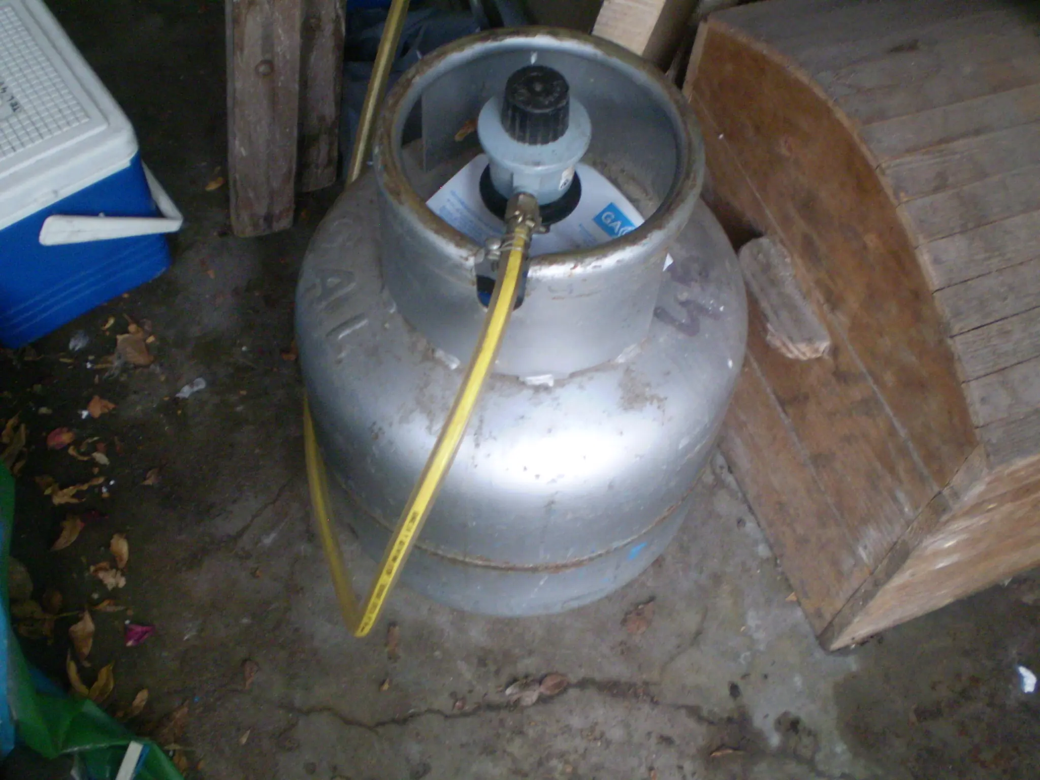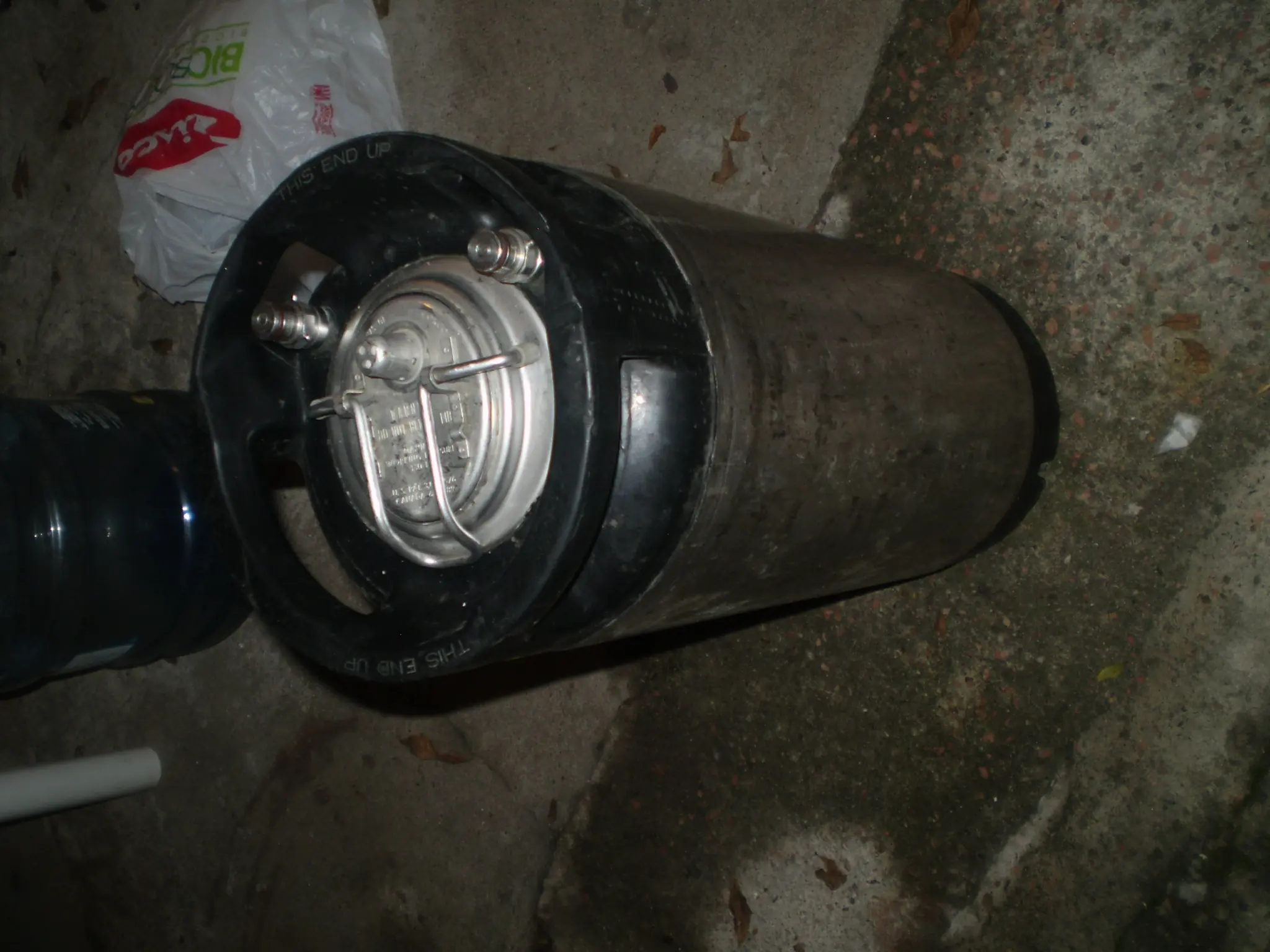 Una vez presurizado, se agita el corni (ojo que ta pesado) para que absorba el gas, cuanto mas frio este, mejor. Cuando lo hayamos agitado mucho, veremos que se habra ido mucha de la presion que habia en el corni anteriormente, asi que enchufamos de vuelta el bomberito y lo presurizamos mas... Luego conectamos la canilla al corni y voila...