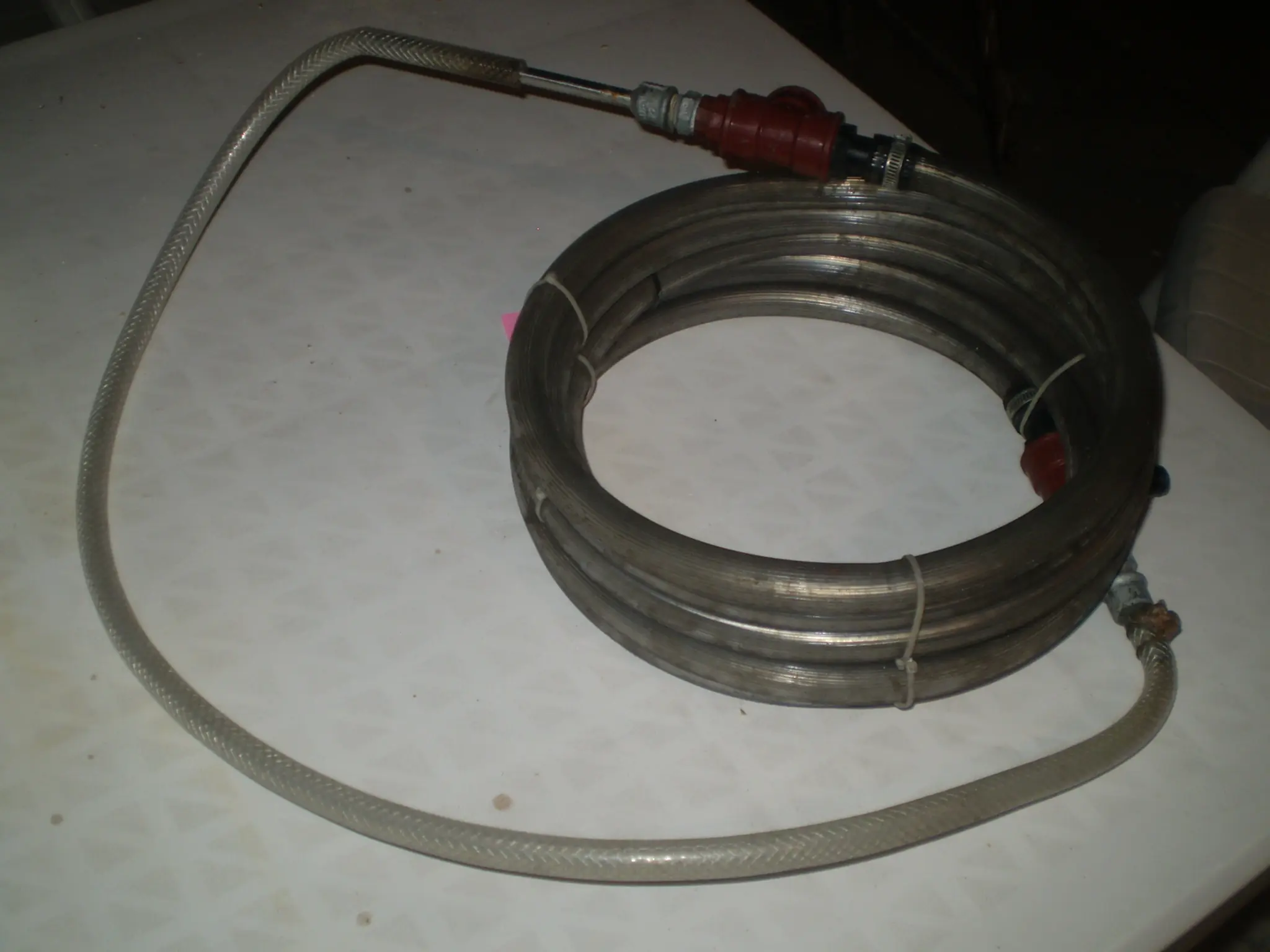 Un contracorriente, osea un caño de metal en espiral, que tiene por afuera una manguera mas gruesa. Se deben tener dos circuitos separados, uno para lo que hay entre el caño de metal y la manguera de plastico y otro para dentro del caño de metal.