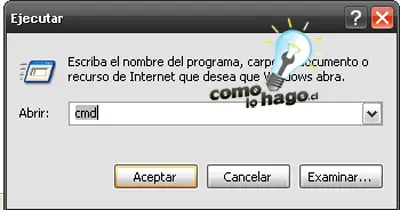 3.- Luego de crear nuestro archivo comprimido, debemos ir a Menú Inicio > Ejecutar y una vez ahí escribimos cmd para cargar el “Símbolo del Sistema”: