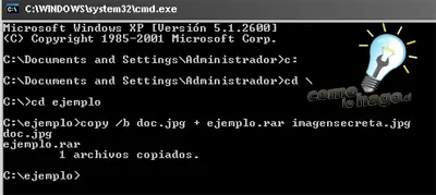 copy /B doc.jpg + ejemplo.rar imagensecreta.jpg
