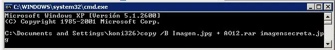 copy /B Imagen.jpg + AO12.rar imagensecreta.jpg
