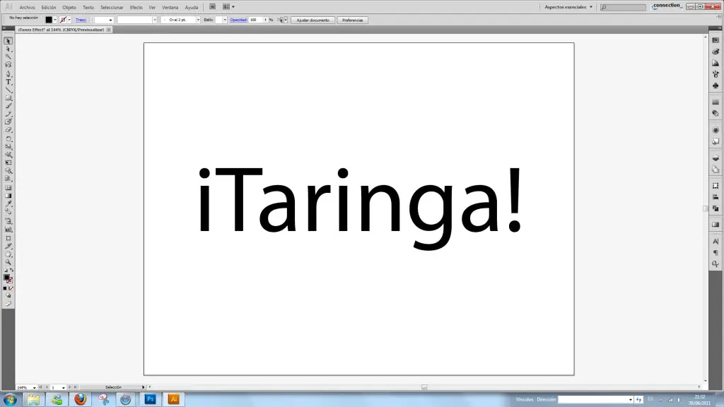 Despuès seleccionamos la Herramienta texto "t" y creamos un texto cualquiera, le aumentamos el tamaño a modo que sea visible, la fuente que Utilizo es Myriad Pro Regular