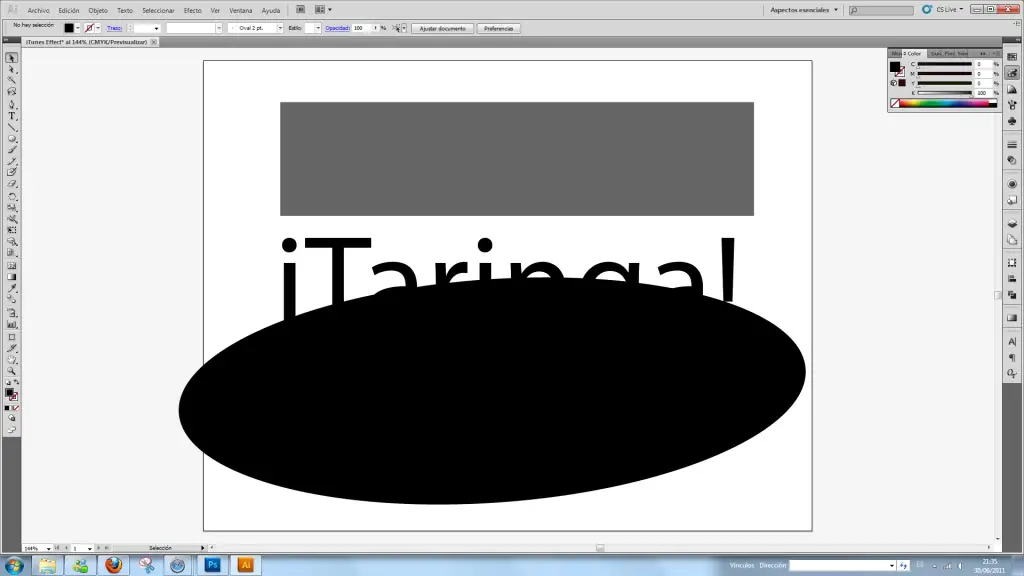 Seguido de esto Seleccionamos la Herramienta elipse "l"y creamos un ovoide que cubra el texto, como el de la imàgen