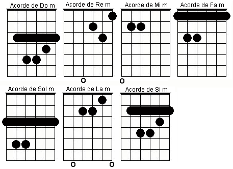 Entonces los acordes que sabemos (incluídos el Si y el Fa mayor) quedarían así: