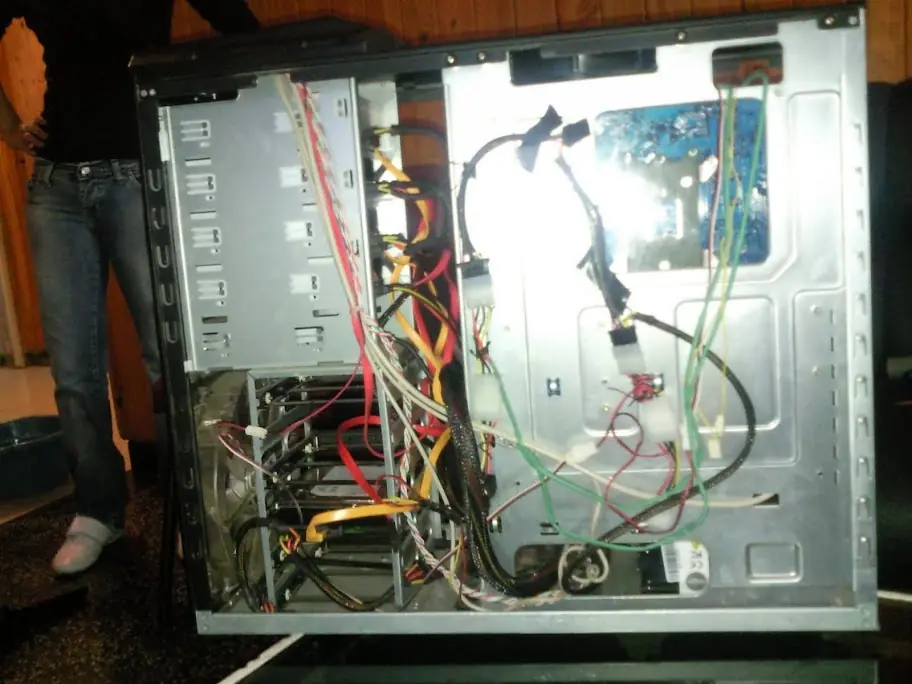 La cinta, si ya se, soy un croto. Pero era domingo y ademas no tenia plata para comprar el malla cubre cables.....pa que les voy a mentir. Pero quedo por lo menos todo mas ordenado. Uni los sata de las grabadoras para hacer 1 solo cable.