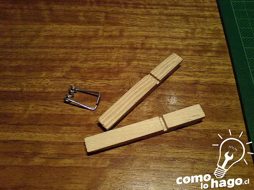 En primer lugar tomamos el broche de ropa y procedemos a desarmarlo.