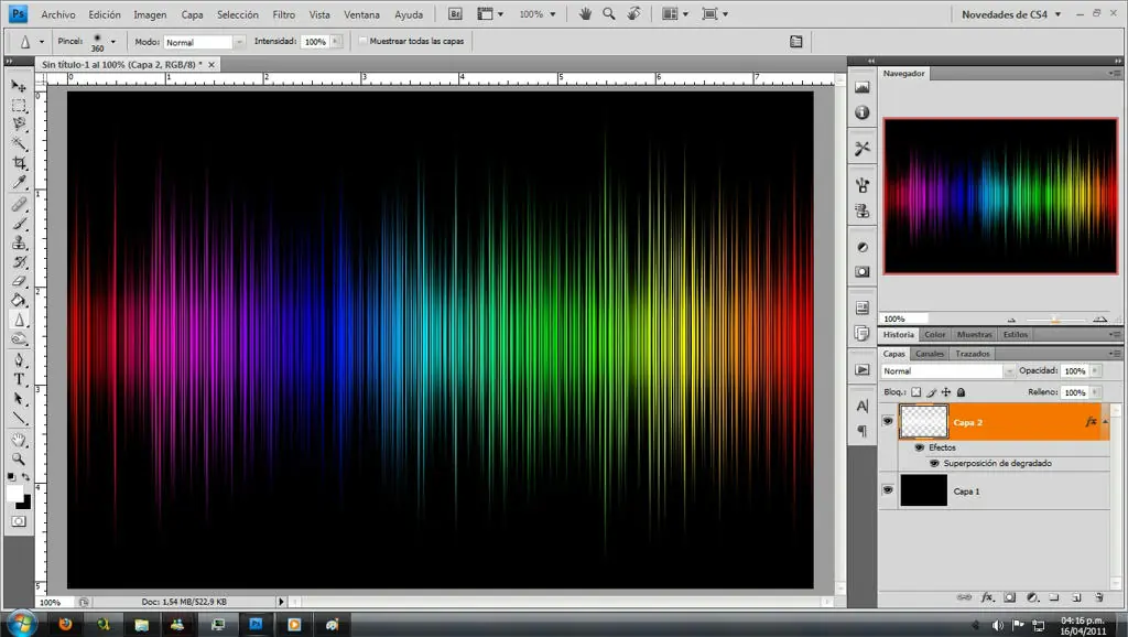 Por ultimo, vamos a las opciones de Fusión de la capa, y activamos la opción "Superposición de degradado". Configuran a gusto, con el ángulo en 0º y obtendran lo siguiente.