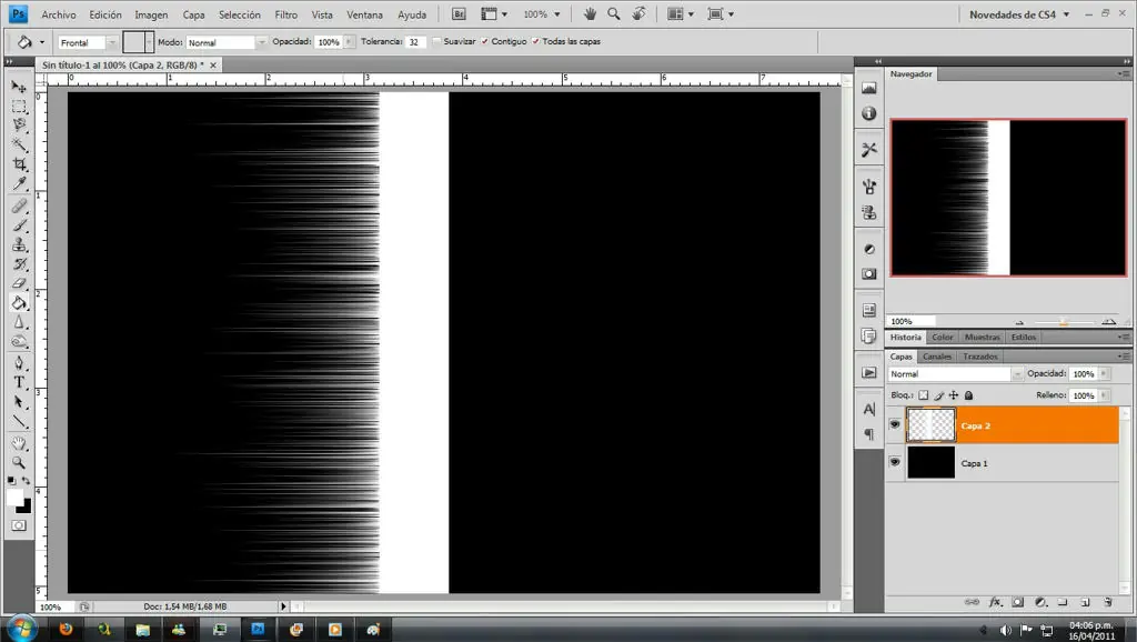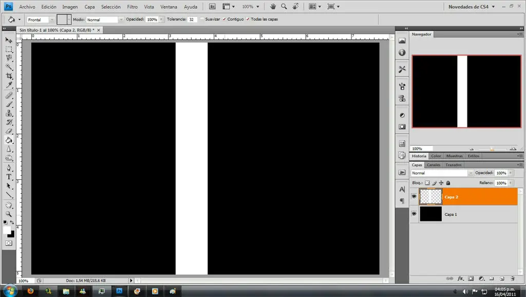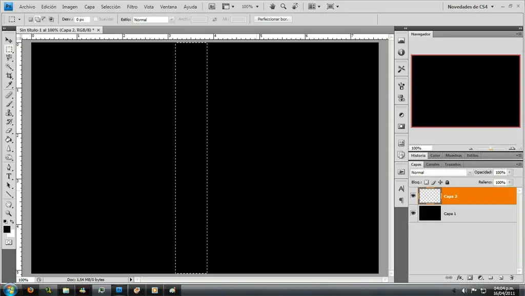 Crear una nueva capa y con la herramienta seleccionar, crear un rectangulo vertical tal como lo indica la imagen.