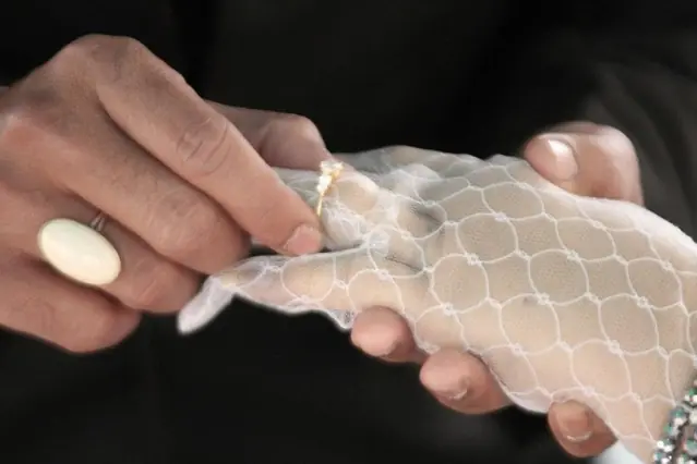 Las fotos muestran a la joven en la cama del hospital y luego en la boda vestida de novia, con una flor en el pecho y una liga blanca, mientras que Chadil le ponía el anillo y la besaba en la mano y en la frente.