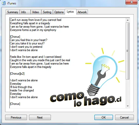 Si luego entran a iTunes por ejemplo y abren la información de alguno de los temas que actualizaron con Lyrics Fetch, observarán que los lyrics ya están allí.