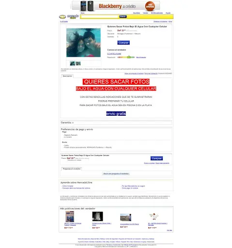 ¡¡NO SE DEJEN ENGAÑAR POR ESTE HDP! ESTA VENDIENDO EN MERCADOLIBRE EL "METODO" PARA SACAR LAS FOTOS BAJO EL AGUA!! SI TIENEN CUENTA DENUNCIEN, NO SE SI SE PUEDE!!
