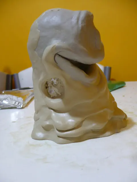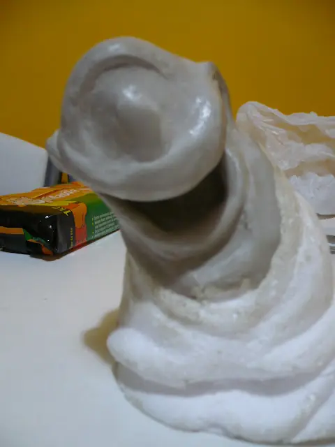 Al ir desbastando de un lado y el otro vamos a ir obteniendo la forma,por lo menos basica para despues acabarla con detalles de masilla epoxi,tambien pueden hacerlo con porcelana