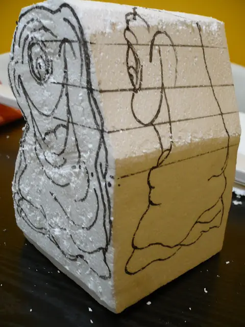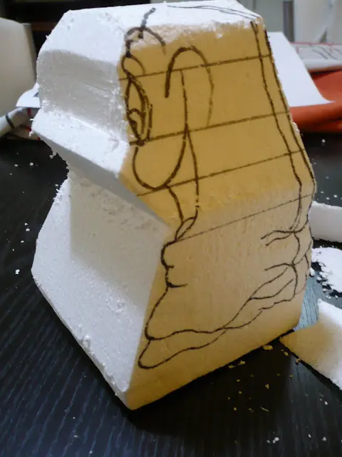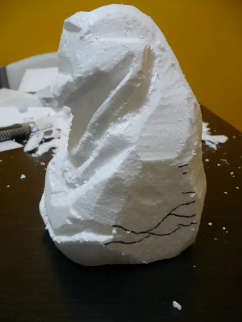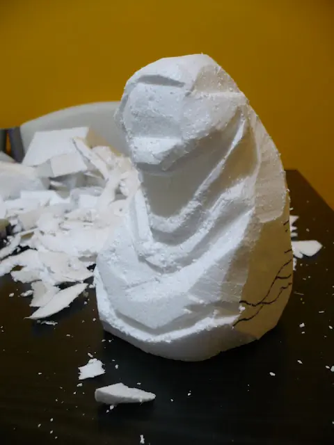 Ahora empezamos a desbastar y cortar el telgopor, yo empiezo por el