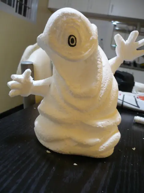 Los ponemos en la figura, con escarbadientes, lo pinchamos a nuestro amigo, y ya que estamos podemos pintarle el ojo.