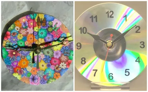 Reloj: Con tus CDs viejos podés realizar los más variados relojes. Utilizando pinturas, papeles, fotos y hasta botones vas a poder darle un estilo determinado a tu CD y marcar sobre él los números correspondientes. A esto luego se le agregan las agujas y la máquina de reloj (disponible en tu casa o la relojería). Útil, sencillo y muy original.