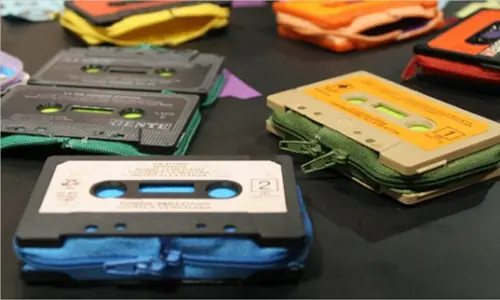 La diseñadora italiana Marcelha Foschi nos demuestra que con un poco de tela y un par de costuras se pueden utilizar los frentes del cassette para decorar una billetera. Una opción retro, sencilla y divertida.