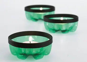 Portavelas: Con tijera o cúter en mano, recortar las botellas cerca de la base y darle terminación con cinta aisladora.