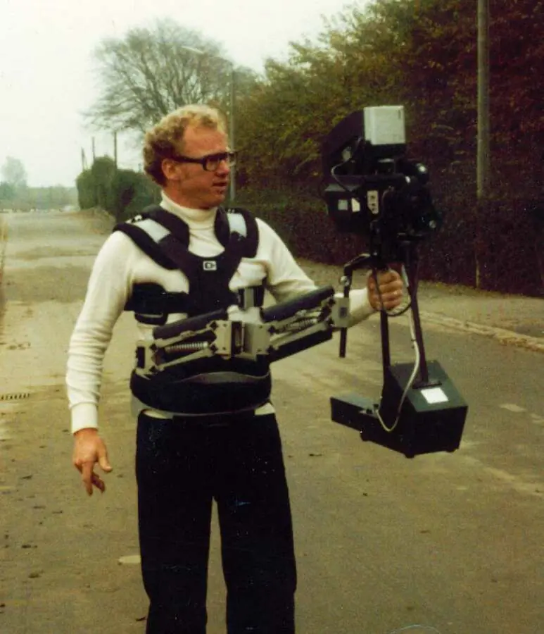 Un Steady Cam, es este aparato que hace que la camara pueda filmar en movimiento, sin vibrar, o sea, manteniendo una armonia.
