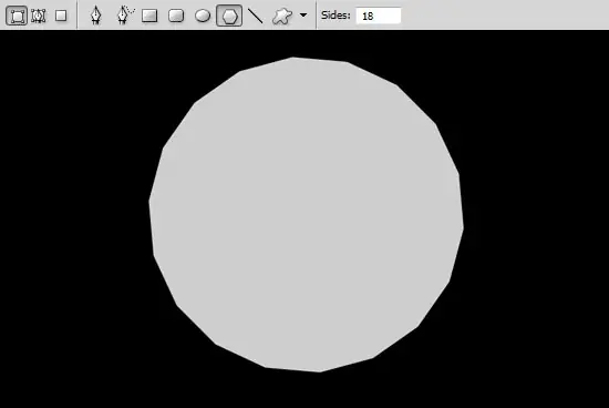 Crear un documento nuevo 1000 × 700 px. Elegí la herramienta poligonal, establece para dar forma a modo de capas, lados = 18 y el color de primer plano #CECECE. Hace un polígono en el documento como lo que hice a continuación.