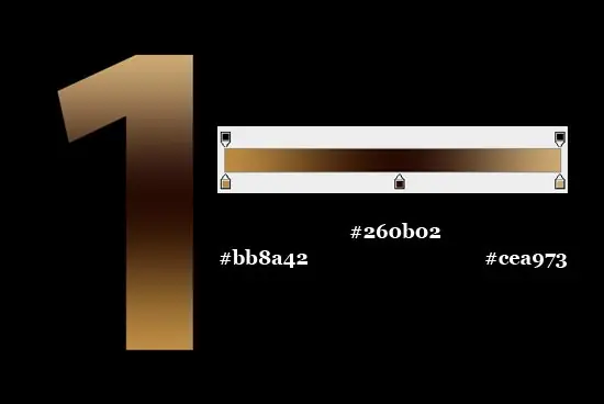 Elija la herramienta Texto y elija una fuente gruesa, yo en este caso elegí la fuente Myriad Pro y escriba su texto. Hace clic en la capa de texto y selecciona Opciones de fusión. Selecciona Superposición de degradado y ajustá el ángulo a 90 y el degradado a los colores que se muestran a continuación.