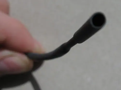 A veces es necesario para soldar dos cables juntos. Por ejemplo, el Sharp IR telémetro, sino que viene con los cables directamente en el enchufe. Lo que se hace, se corta uno de los cables hembra (arriba) en 2 partes, la soldadura de juntas .. pero antes de eso, se corta un pedazo de este encogimiento del calor del tubo para deslizarse sobre el lugar sin aislamiento. Luego, con un encendedor, usted puede calentar el tubo, y se encoge para encajar.