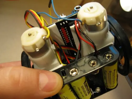 Este robot necesita 5 voltios. Principalmente porque el IR Sharp, realmente se siente mejor en 5.0V, que es lo que está hecho para. Motores y servo le gustaría tener más, el microcontrolador puede vivir con 6.0V, pero manteniendo la sencillez es la base aquí, así que vamos a alimentar el robot con todo tan cerca de 5.0V como sea posible. Y en lugar de demasiado poco demasiado, así que asegúrese de no freír nada, ya que este es su primer robot