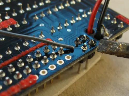 mientras esté en él, también soldar un pin en el puerto analógico 0, que vamos a utilizar para el Sharp: