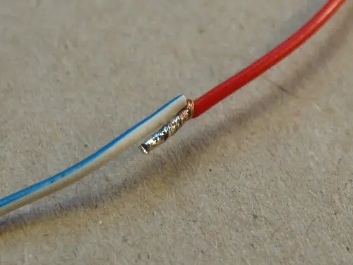 Sin embargo, antes de hacer esto, me aseguro de que me han cortado un pedazo de tubo de calor contrae, y la colocó sobre uno de los cables. Entonces me deslizo que más ..