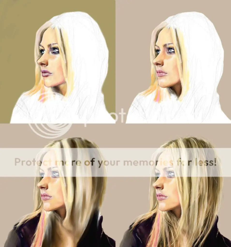 El primero lo hice hace cuatro años, es uno de mis primeros dibujos digitales, a partir de una foto de Avril Lavigne (no soy fanático, solo me pareció muy linda en esta foto en particular) Siempre en Corel Painter X usando una tableta Genius (los dos primeros con una Mousepen 8x6 y el ultimo con una G-Pen M712x)
