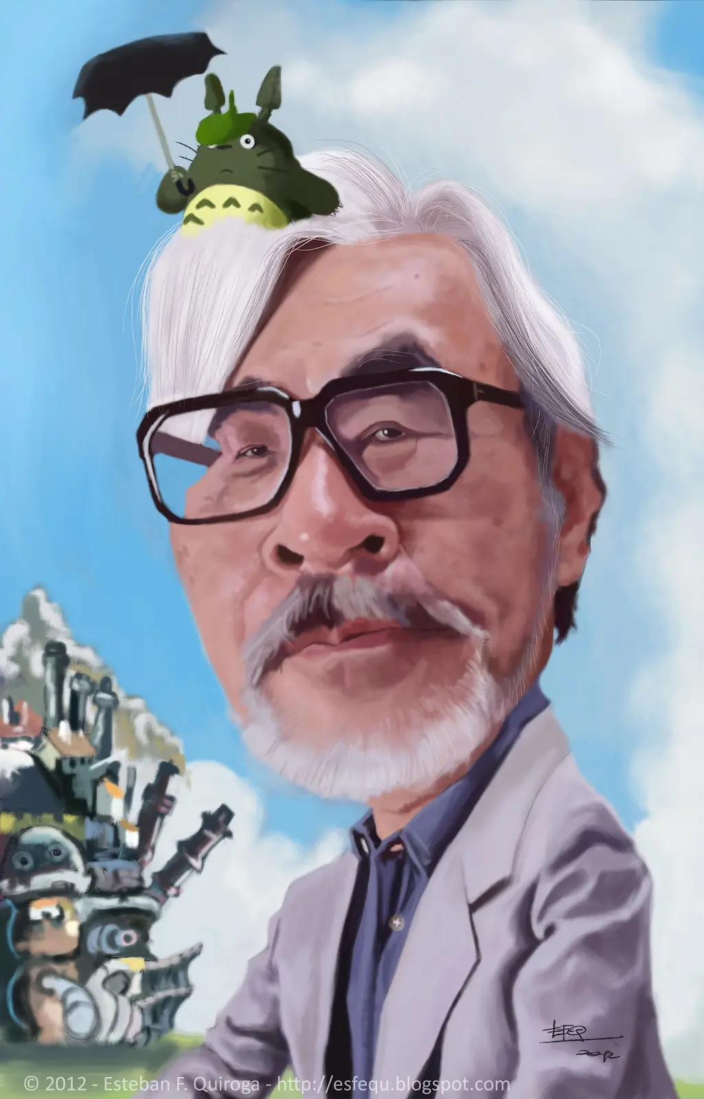 Amigos les dejo uno de mis ultimos trabajos el gran Hayao Miyazaki !!!!! Aqui les dejo el proceso y la certificada !