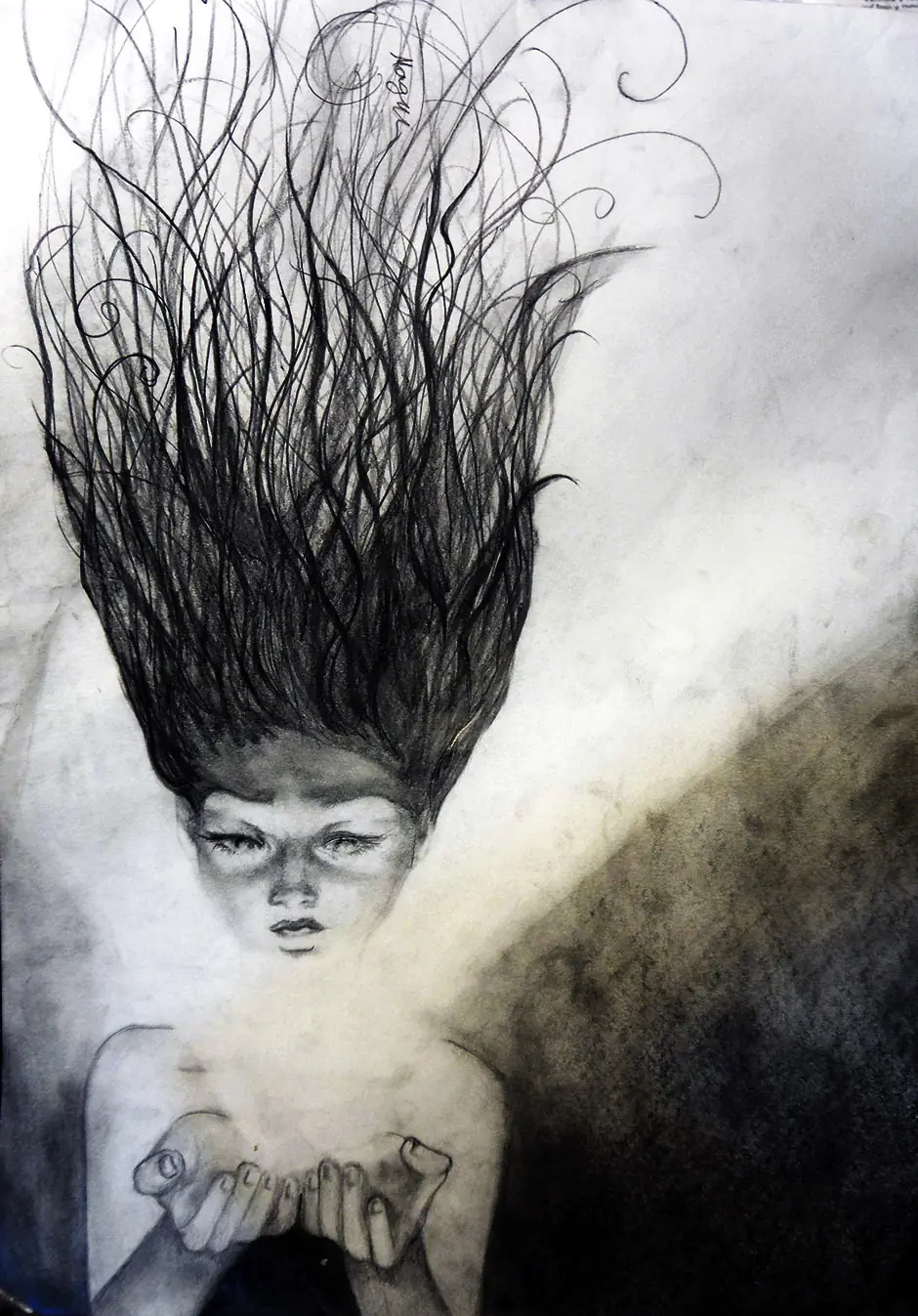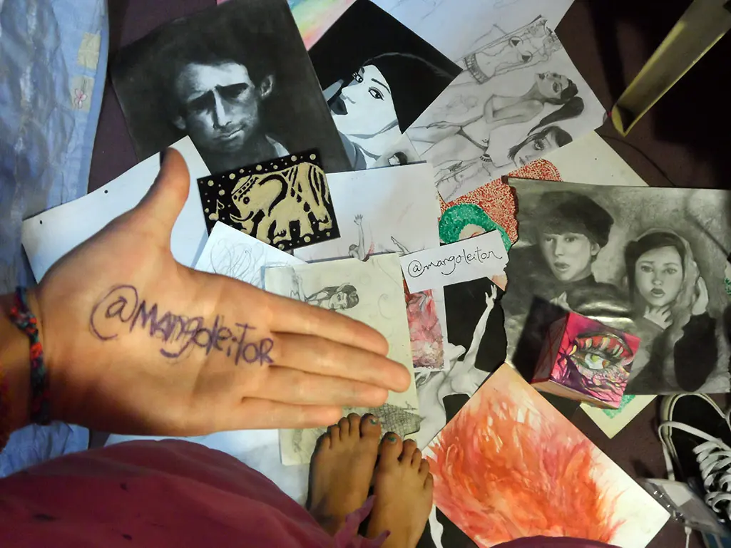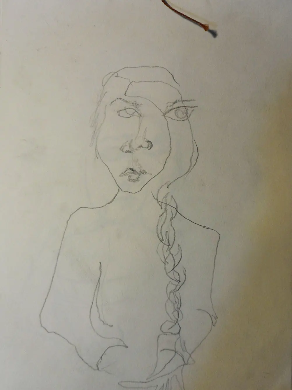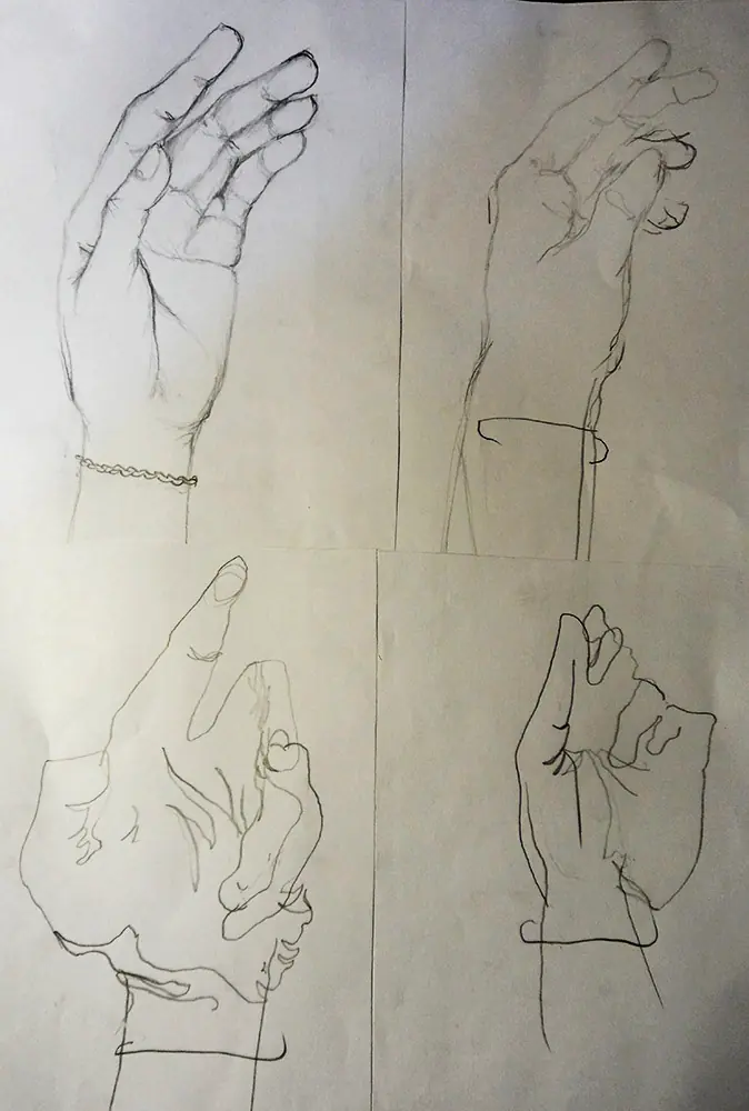Dibujo de mi mano, en cada instancia mirando cada vez menos la hoja.(2012)