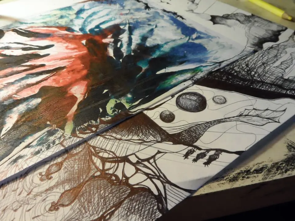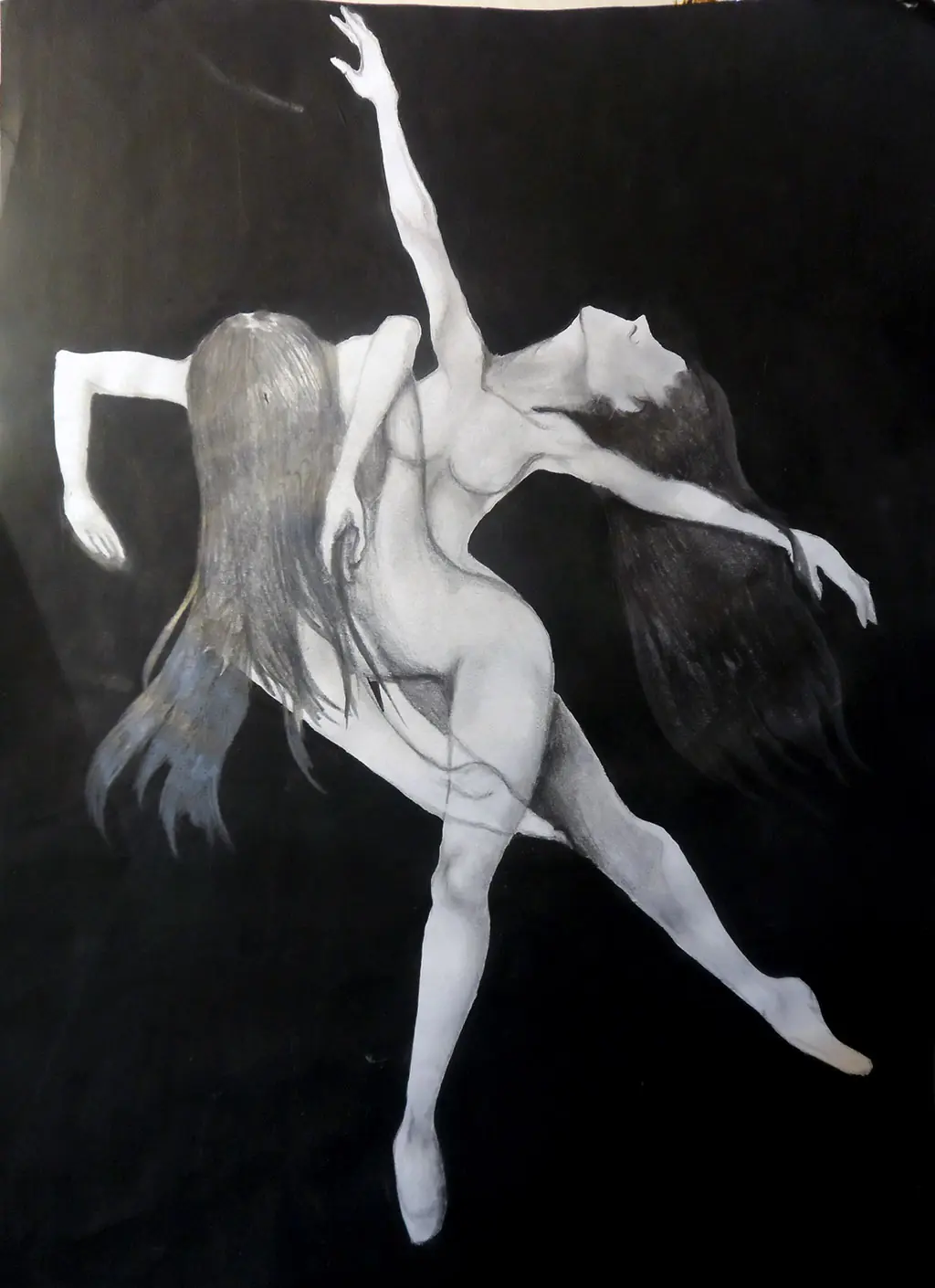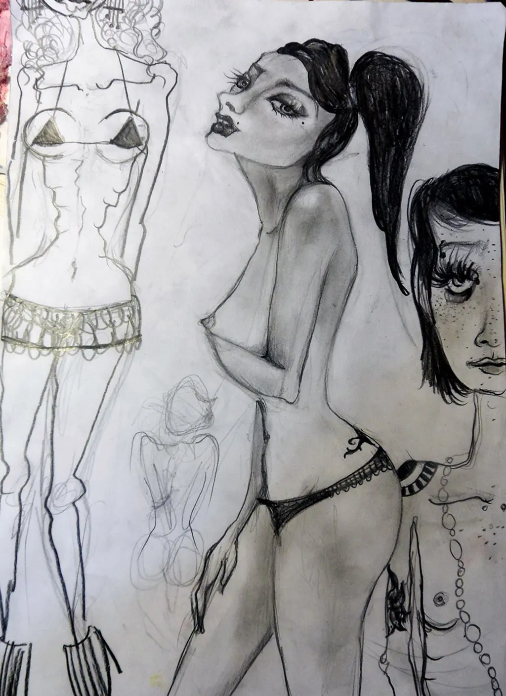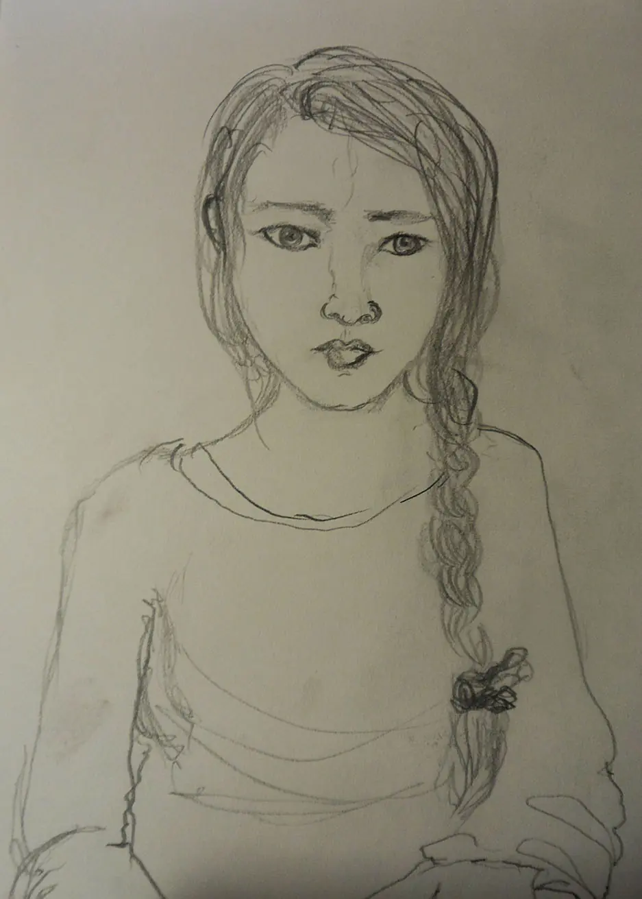 Dibujo de mi mano, en cada instancia mirando cada vez menos la hoja.(2012)