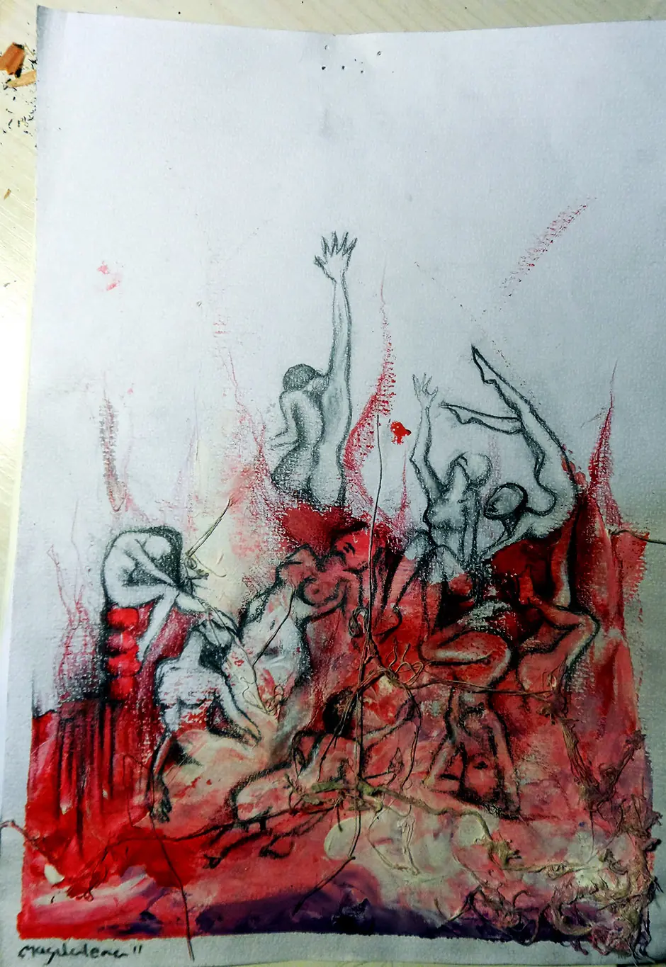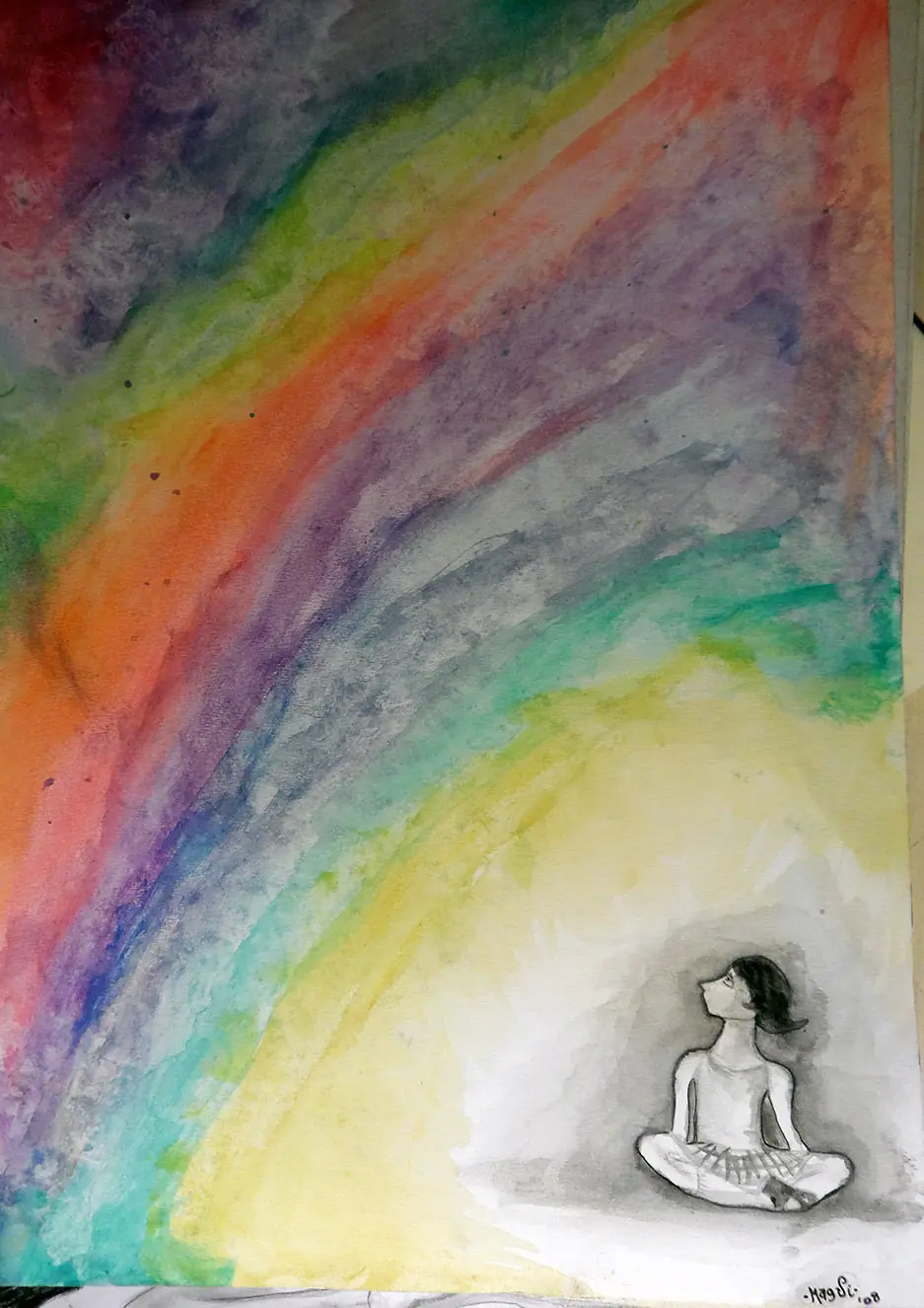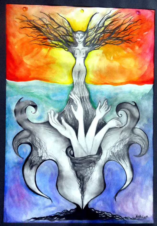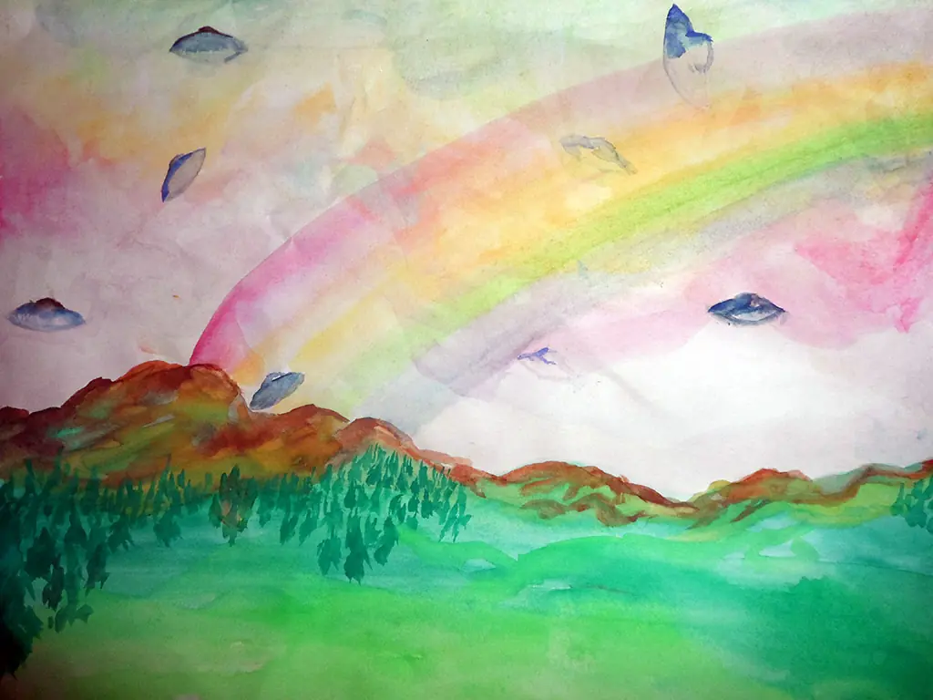 "El hipotetico caso donde seres superiores dominen el planeta Tierra... no habria contaminación y reina la paz", acuarela (2012)