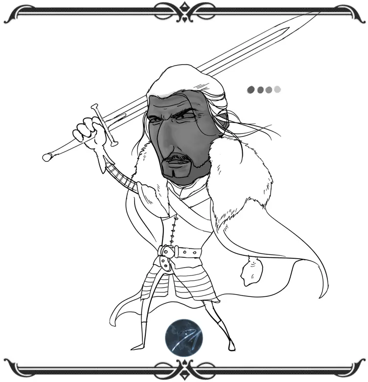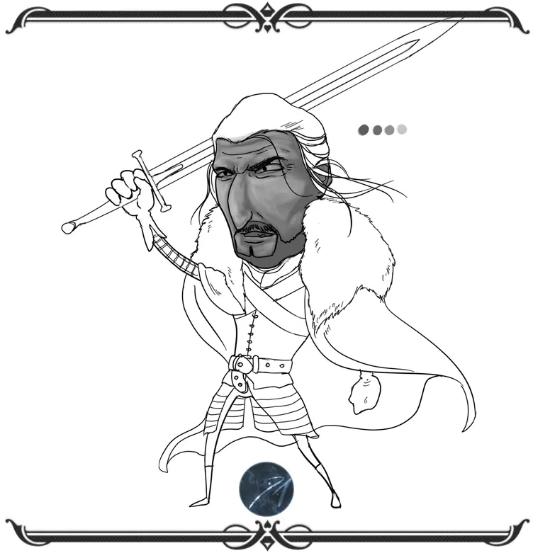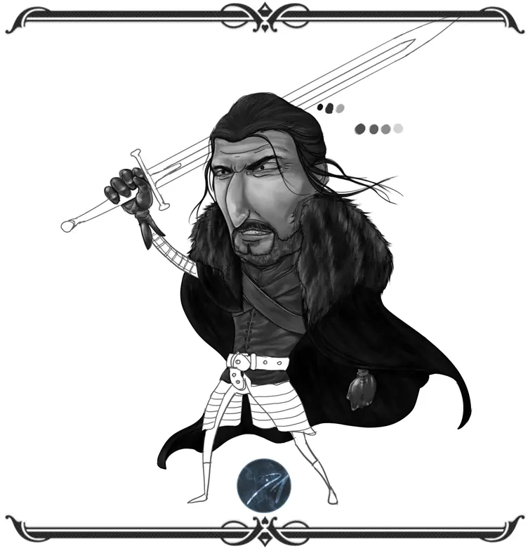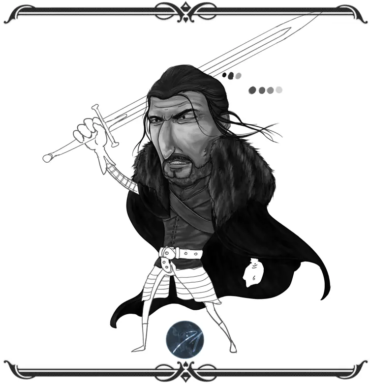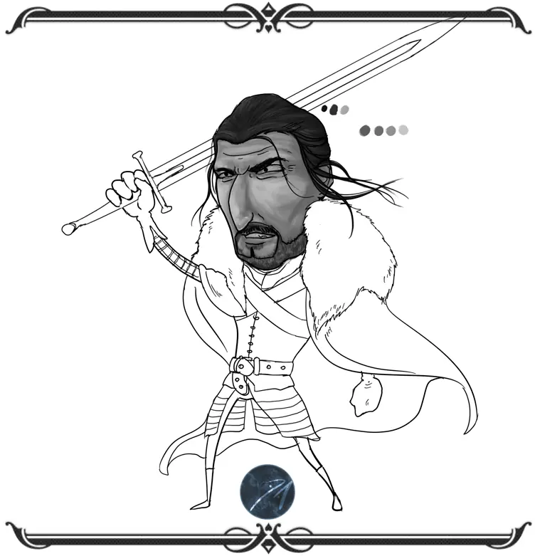 buenas amigos, dejo mi mas reciente ilustracion,y un proceso resumido de los pasos que segui para crearla.Esta ves la ilustracion es un fan art de eddard stark de la serie game of thrones,y el tratamiento que le quise dar es una onda caricaturesco...