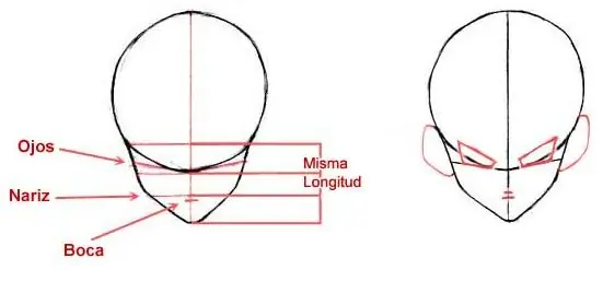 Primero dibuja una silueta como se muestra en el boceto. Procura trazar correctamente las líneas que atraviesan el rostro porque serán nuestros puntos guía para continuar con el dibujo.