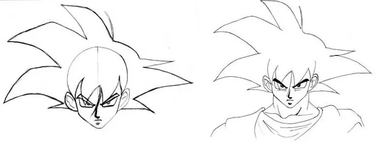 Pero por si se quedaron con más ganas de seguir dibujando, a continuación encontrarán la manera de realizar el mismo dibujo pero desde otra vista, la frontal. Para no demorar más su lectura y como supongo estarán bastante mecanizados, solo les dejaré la secuencia de imágenes. Espero disfruten dibujando a Goku.