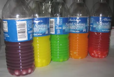Usted puede ser más complejo de lo que yo estaba aquí, y utilizar un embudo para verter el Skittles de sabor en cada una de las botellas. La razón por la que lo hizo de esta manera es que creí que sería más fácil de lavar cada sabor de Skittles fuera de mis manos antes de pasar a la próxima de lo que para conseguir que el sabor de que el embudo cada vez - de plástico que tiende a mantener los sabores, la piel no.