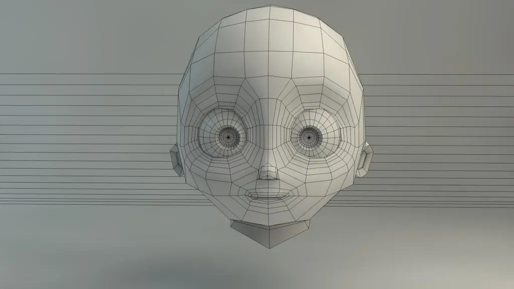 Aqui aplique una simetria para que se notara mas la forma de la cabeza.