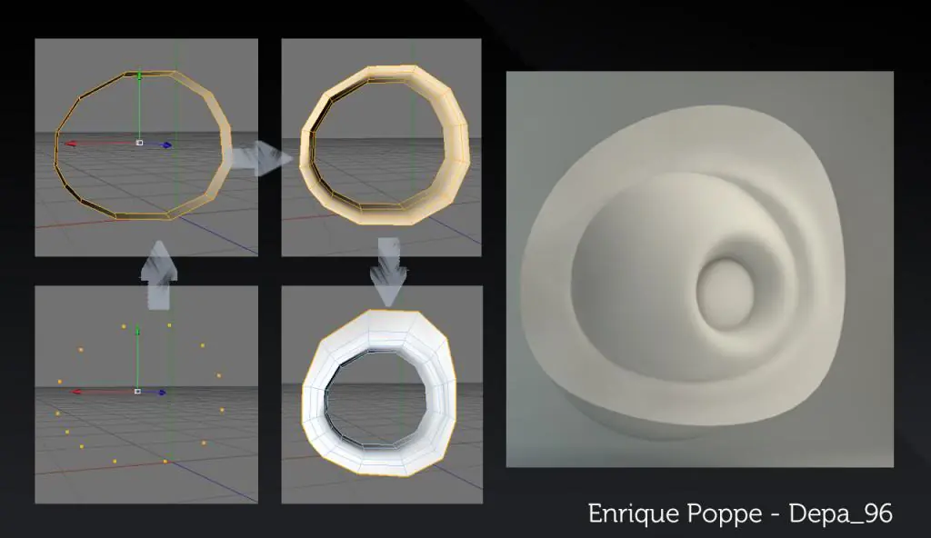 los puntos y extruyendo los circulos que se iban formando salio como en la imagen:
