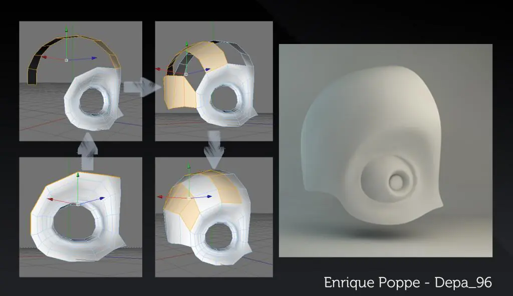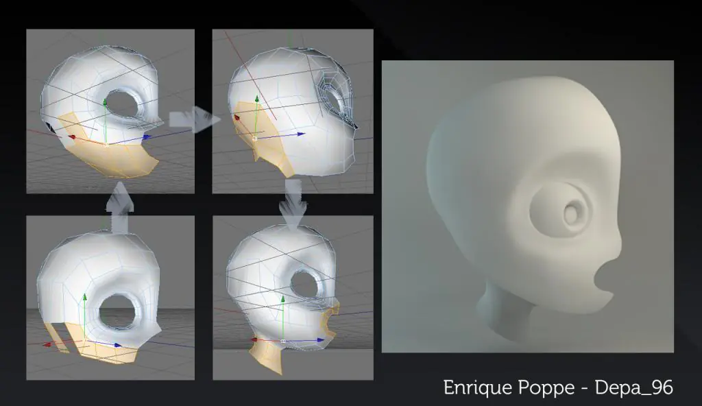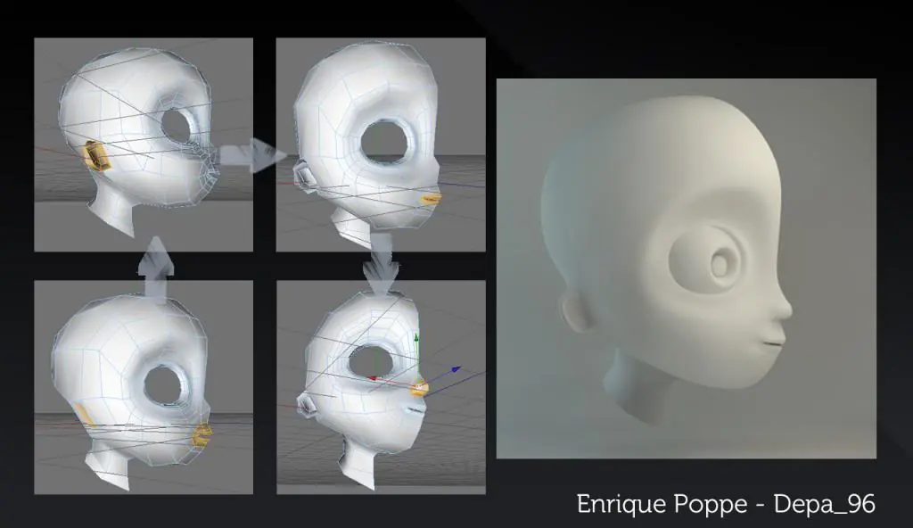 extrusión interior y luego una extrusión normal saque la oreja. Luego termine de extruir los bordes de la boca, dando forma a los