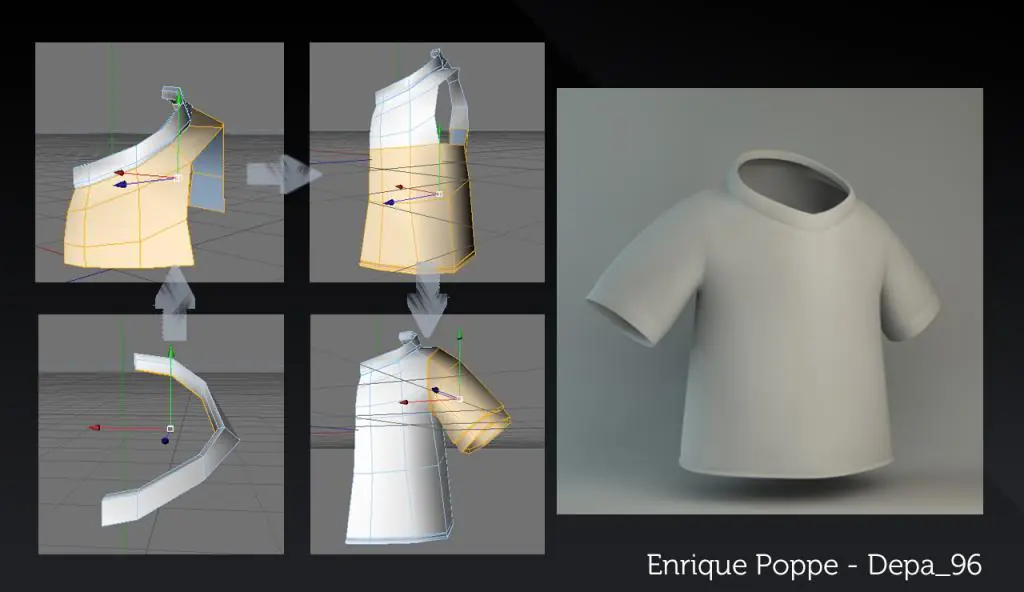 extruyendolos y dando forma de los mismos. Para dar por terminada la polera, lo meti en una Simetria y un Hypernurbs (para