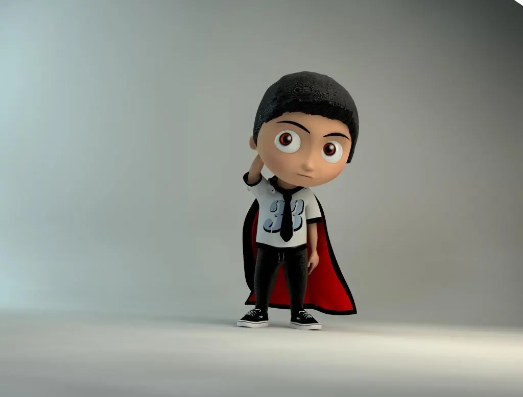 Para finalizar el modelado del personaje agregue detalles faltantes: Cabello, una paca, charreteras en la polera y una corbata. Quedo