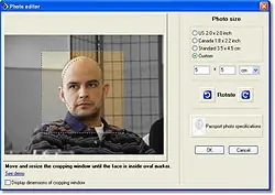 Passport Photo tiene un funcionamiento extremadamente sencillo: elige la foto que acabas de tomar y, según el tamaño de fotografía que definas, delimitarás el área visible mediante un marco.