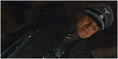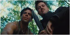 Aldo y el soldado Utivich admiran la "obra maestra" que acaban de realizar en la frente del coronel Landa.