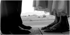 Shosanna se aleja del lugar de la masacre con los pies descalzos.
