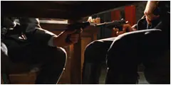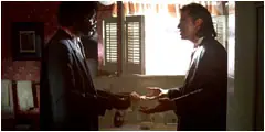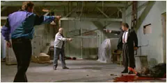 El "Duelo mexicano" es otra pasión de Tarantino. Es una escena en la que los personajes se puntan con armas el uno al otro. El origen de la escena es en "The Good, The Bad & The Ugly" de Sergio Leone.